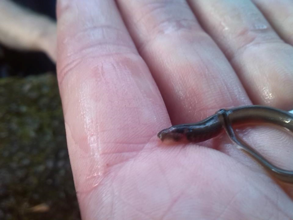 A brook/river lamprey ammocoete captured during an electric fishing survey