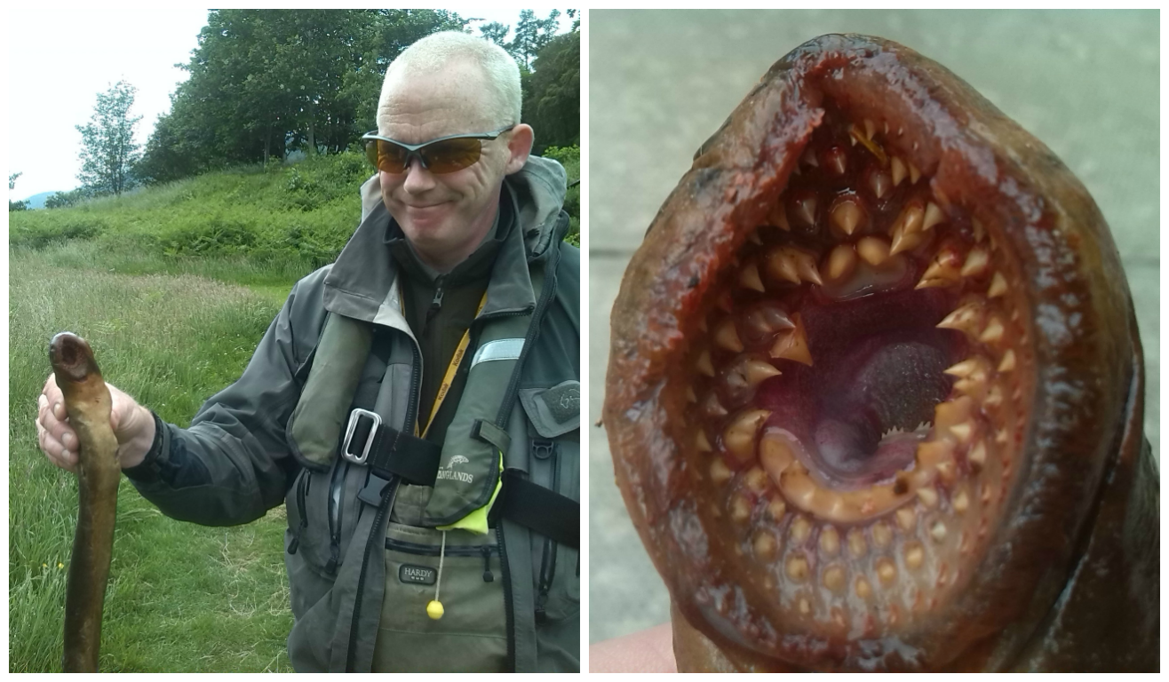 The lampreys belong to an ancient order of vertebrates, the Agnathans or ‘jawless fishes’. The skeletons of lampreys are of strong flexible cartilage and it is no comprised of bone. A round, sucker-like disc surrounds the mouth which, in adults, carries rasping teeth. Most, but not all, species of lamprey are parasitic on other fish.